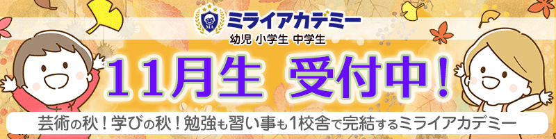 ミライアカデミーは幼児・小学生対象の英語教室、プログラミング教室、まんが教室、作文教室、理科実験教室、絵画・工作教室、硬筆・毛筆教室、ロボット教室、そろばん教室、能力開発教室、個別学習指導など全15コースあり、どのコースも専門の講師による少人数制指導となっています。